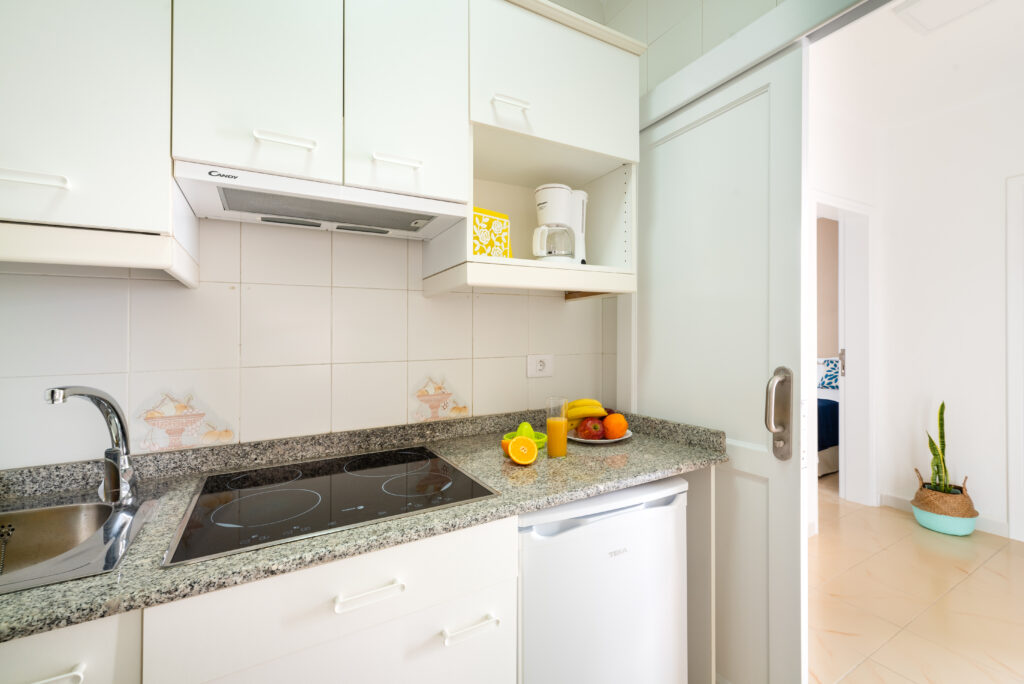 Sin embargo, la joya de nuestro bungalow es la amplia terraza privada, donde podrás disfrutar de la brisa marina y las vistas panorámicas al océano. Imagina desayunar con el sonido del mar de fondo o relajarte bajo el cálido sol de Lanzarote mientras las olas acarician la costa.
